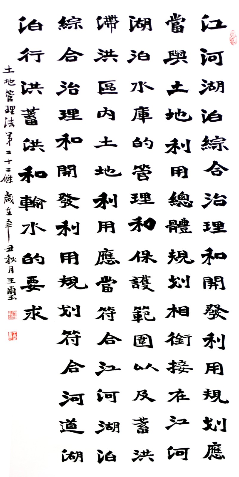 繼1600余位書法家參與書寫《中華人民共和國民法典》全部1260條法條之后,法治日?qǐng)?bào)社聯(lián)合自然資源部法規(guī)司、自然資源部書畫研究會(huì)和北京昌平書法家協(xié)會(huì),將筆端對(duì)準(zhǔn)土地管理“一法一條例”,即《中華人民共和國土地管理法》和《中華人民共和國土地管理法實(shí)施條例》。