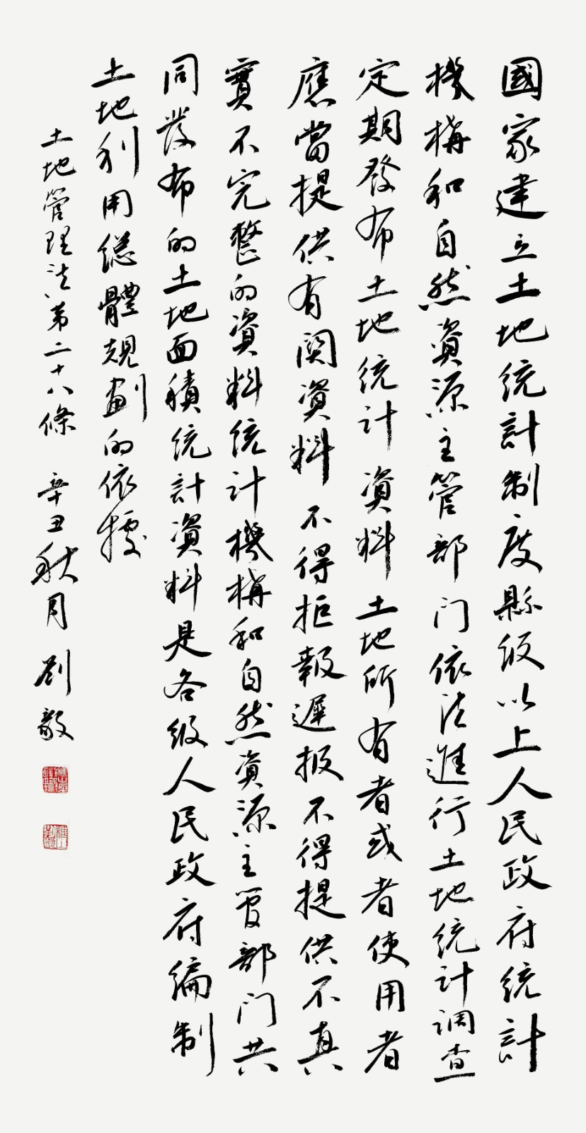 繼1600余位書(shū)法家參與書(shū)寫(xiě)《中華人民共和國(guó)民法典》全部1260條法條之后,法治日?qǐng)?bào)社聯(lián)合自然資源部法規(guī)司、自然資源部書(shū)畫(huà)研究會(huì)和北京昌平書(shū)法家協(xié)會(huì),將筆端對(duì)準(zhǔn)土地管理“一法一條例”,即《中華人民共和國(guó)土地管理法》和《中華人民共和國(guó)土地管理法實(shí)施條例》。