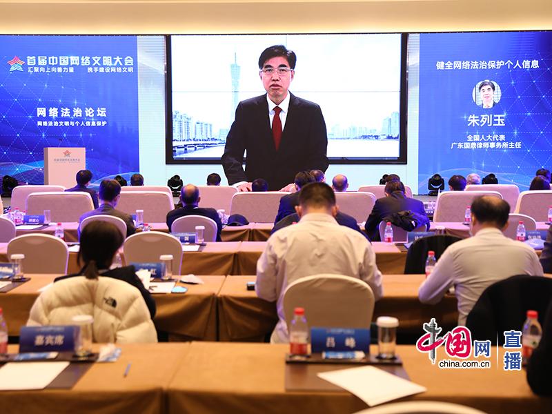 在主旨發(fā)言環(huán)節(jié),全國人大代表、廣東國鼎律師事務(wù)所主任朱列玉以“健全網(wǎng)絡(luò)法治 保護(hù)個人信息”為題進(jìn)行了發(fā)言交流,以下是發(fā)言內(nèi)容。