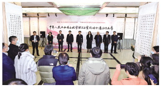 12月1日,“書·法”系列活動(dòng)——中華人民共和國(guó)土地管理法與實(shí)施條例書法作品展在中國(guó)地質(zhì)博物館開幕。圖為開幕式現(xiàn)場(chǎng)。 法治日?qǐng)?bào)全媒體記者 楊晉峰 攝