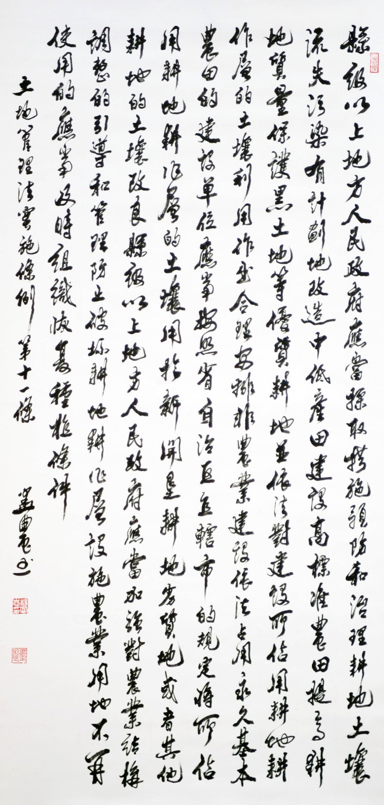 繼1600余位書法家參與書寫《中華人民共和國民法典》全部1260條法條之后,法治日報社聯合自然資源部法規(guī)司、自然資源部書畫研究會和北京昌平書法家協會,將筆端對準土地管理“一法一條例”,即《中華人民共和國土地管理法》和《中華人民共和國土地管理法實施條例》。