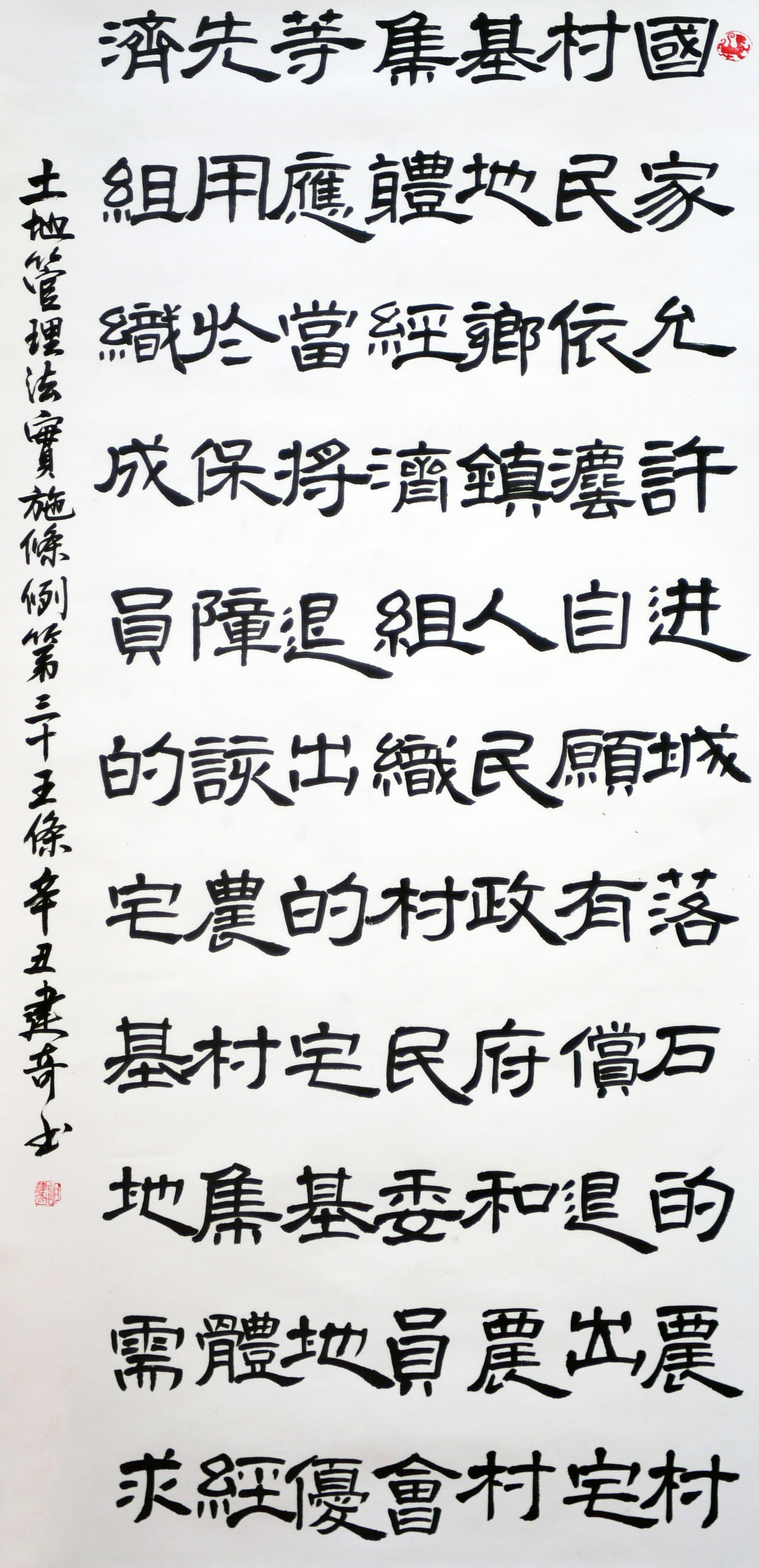 繼1600余位書法家參與書寫《中華人民共和國(guó)民法典》全部1260條法條之后,法治日?qǐng)?bào)社聯(lián)合自然資源部法規(guī)司、自然資源部書畫研究會(huì)和北京昌平書法家協(xié)會(huì),將筆端對(duì)準(zhǔn)土地管理“一法一條例”,即《中華人民共和國(guó)土地管理法》和《中華人民共和國(guó)土地管理法實(shí)施條例》。
