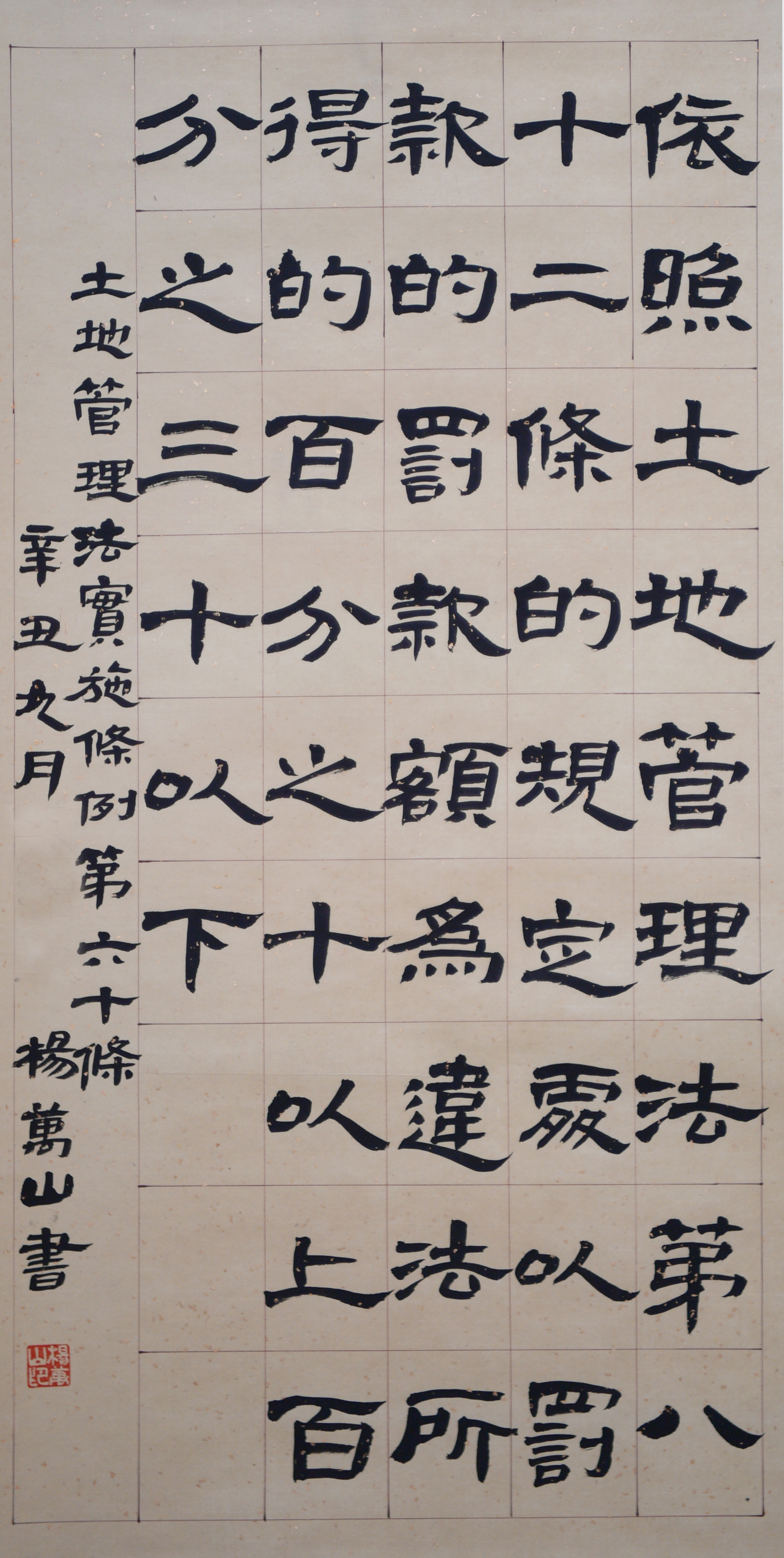 繼1600余位書法家參與書寫《中華人民共和國民法典》全部1260條法條之后,法治日報社聯(lián)合自然資源部法規(guī)司、自然資源部書畫研究會和北京昌平書法家協(xié)會,將筆端對準土地管理“一法一條例”,即《中華人民共和國土地管理法》和《中華人民共和國土地管理法實施條例》。