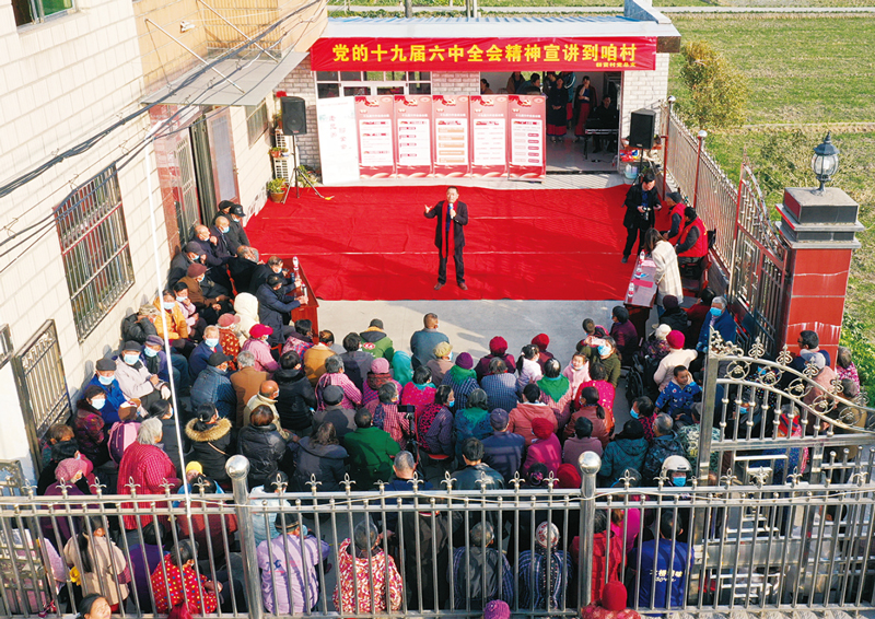 2021年12月5日,江蘇省海安市曲塘鎮(zhèn)群賢村開展“黨的十九屆六中全會(huì)精神宣講到咱村”活動(dòng),通過百姓名嘴宣講、文藝表演、詩朗誦等形式,向群眾宣傳全會(huì)精神。 人民視覺 姜明/攝