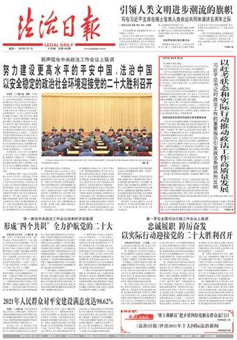 全國政法機關、廣大政法干警將更加緊密地團結在以習近平同志為核心的黨中央周圍,勠力同心、奮楫篤行,守正創(chuàng)新、開拓進取,奮力推動新時代政法工作高質量發(fā)展,不斷提升人民群眾獲得感、幸福感、安全感,以優(yōu)異成績迎接黨的二十大勝利召開。