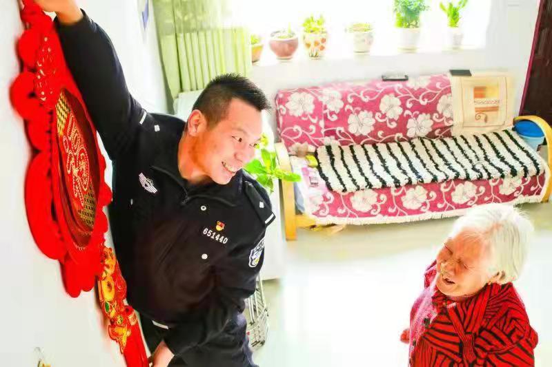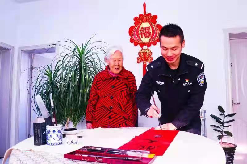 活動(dòng)中,派出所民警李鵬翔、楊文龍到轄區(qū)孤寡、獨(dú)居和生活困難的群眾家中,親手書(shū)寫(xiě)春聯(lián),幫助群眾掛上中國(guó)結(jié)和紅燈籠,并送去米、面、油、牛奶等慰問(wèn)品表達(dá)節(jié)日的問(wèn)候與祝福。期間,民警們特別登門(mén)拜訪(fǎng)了轄區(qū)75歲的抗美援朝老戰(zhàn)士李大娘家,為其送上春聯(lián),并聽(tīng)李大娘講述抗美援朝故事,傳承擁軍愛(ài)民的光榮傳統(tǒng)。