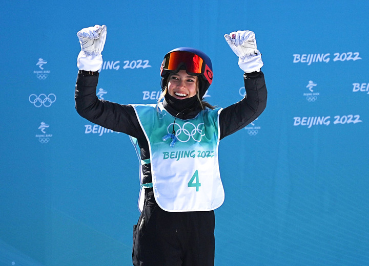 2月7日,谷愛凌在比賽后慶祝。新華社記者熊琦攝