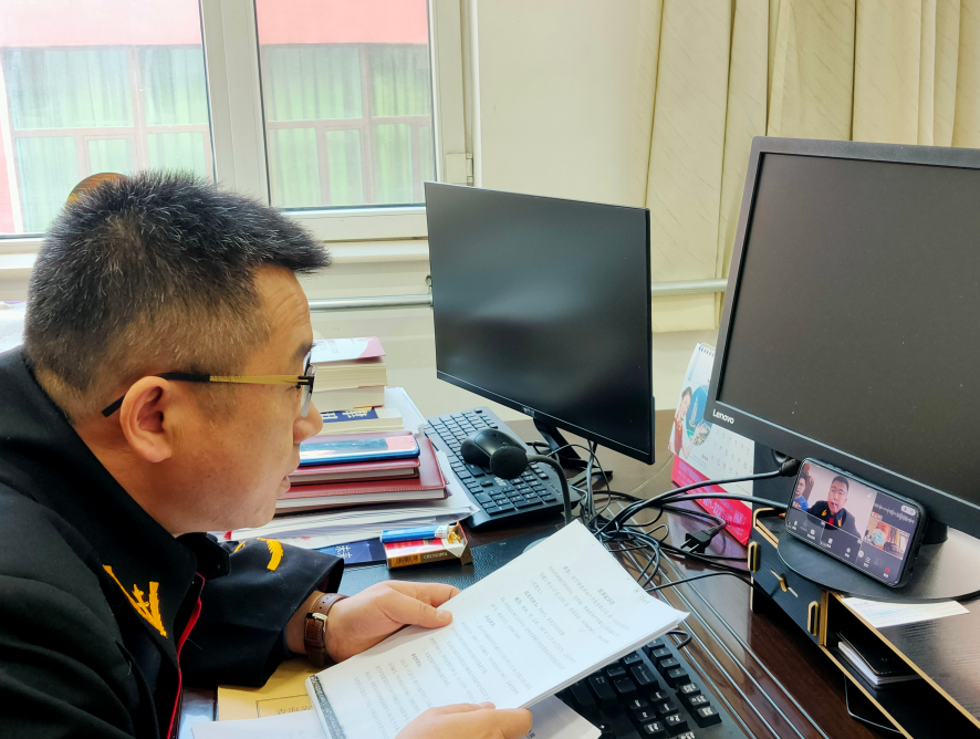臘月二十八,《法治日報》記者來到了青海省西寧市城北區(qū)法院廿里鋪法庭。此時法庭庭長張永平正身著法袍,坐在辦公室內(nèi),對著手機調(diào)解一起糾紛。原被告雙方代理人也同時出現(xiàn)在手機屏幕中。