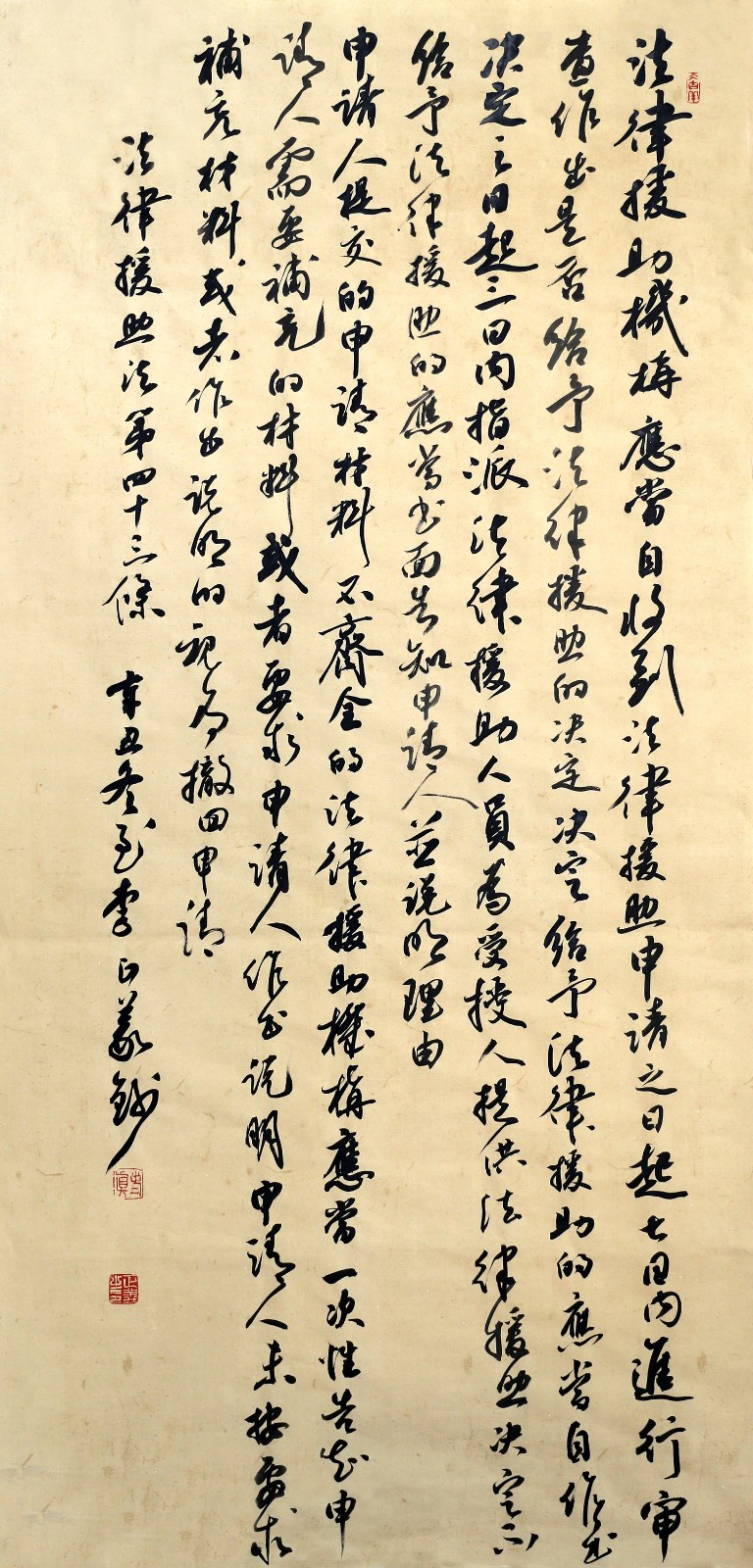 法律援助法第四十三條 法律援助機(jī)構(gòu)應(yīng)當(dāng)自收到法律援助申請(qǐng)之日起七日內(nèi)進(jìn)行審查,作出是否給予法律援助的決定。決定給予法律援助的,應(yīng)當(dāng)自作出決定之日起三日內(nèi)指派法律援助人員為受援人提供法律援助;決定不給予法律援助的,應(yīng)當(dāng)書(shū)面告知申請(qǐng)人,并說(shuō)明理由。