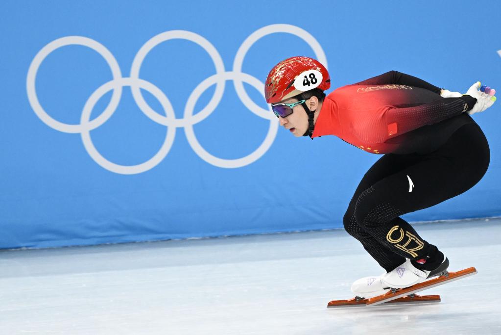 2月11日,中國(guó)選手武大靖在北京冬奧會(huì)短道速滑項(xiàng)目男子500米預(yù)賽中。新華社記者鞠煥宗攝
