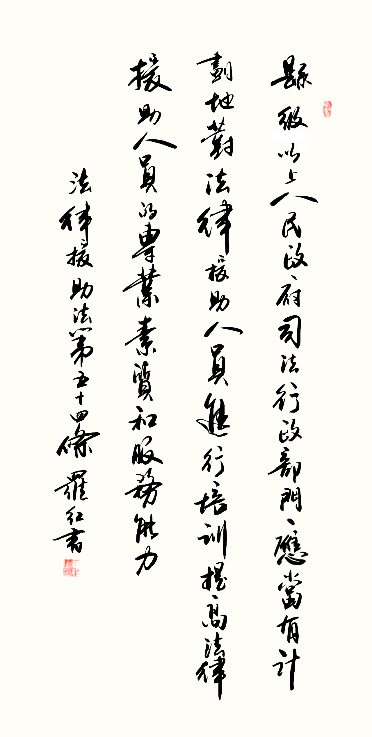 “書·法”活動旨在為創(chuàng)新法治宣傳教育,多開一點腦洞、多花一點心思、多出一點力量、多做一點貢獻,引領(lǐng)和推動更多的人拿起筆來學(xué)法、寫法,在不斷“書·法”過程中,提升自身的法治素養(yǎng),在全社會弘揚法治精神。