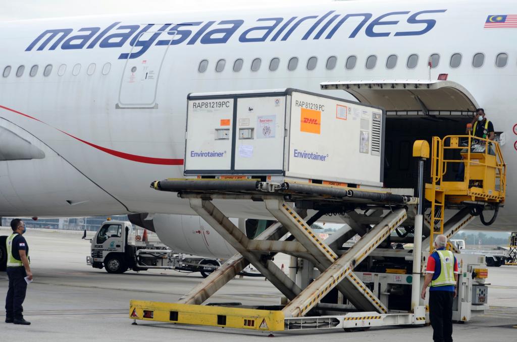 2021年8月20日,首批中國康希諾新冠疫苗運抵馬來西亞吉隆坡國際機場。(新華社發(fā),馬來西亞科學、工藝和創(chuàng)新部供圖)