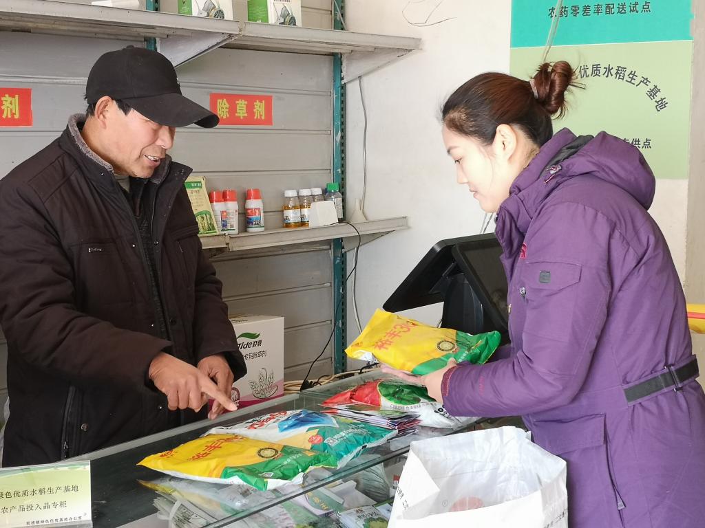 權(quán)太琦(右)在農(nóng)資銷(xiāo)售店詢問(wèn)價(jià)格變化。 新華社記者 陸華東 攝