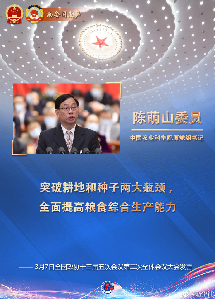 7日上午,全國政協(xié)十三屆五次會(huì)議舉行第二次全體會(huì)議。12名委員作大會(huì)發(fā)言。陳萌山委員發(fā)言。