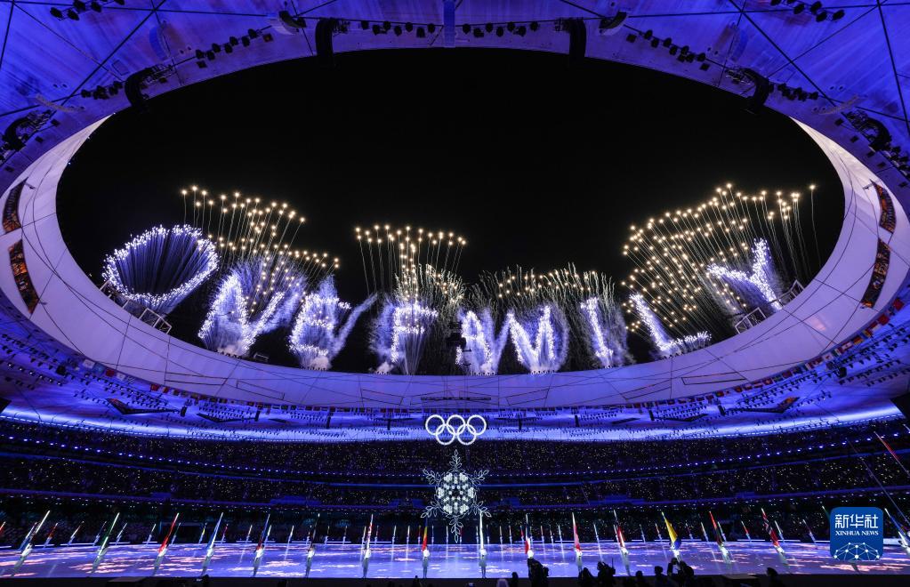 2022年2月20日晚的國家體育場流光溢彩,充滿依依惜別的濃濃情誼?!疤煜乱患摇弊謽拥难婊鹪凇傍B巢”上空粲然綻放,舉世矚目的北京冬奧會圓滿落下帷幕。