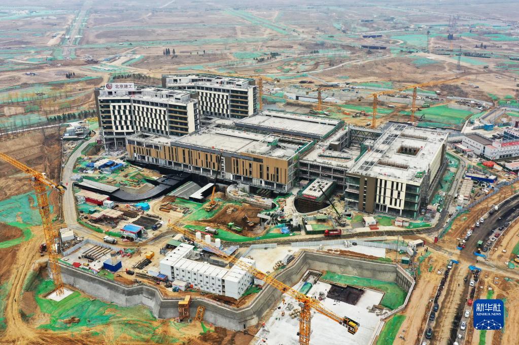 這是3月29日拍攝的雄安新區(qū)首都醫(yī)科大學(xué)宣武醫(yī)院雄安院區(qū)項(xiàng)目建設(shè)施工現(xiàn)場(chǎng)(無(wú)人機(jī)照片)。新華社記者 朱旭東 攝