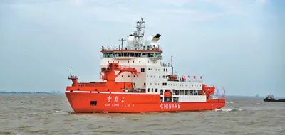 “雪龍2”號破冰船正在航行中。