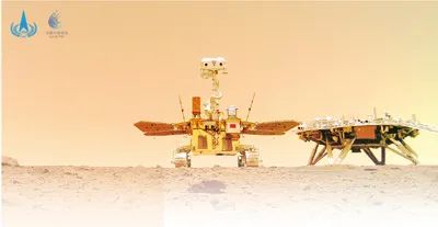 祝融號火星車拍攝的“著巡合影”圖。