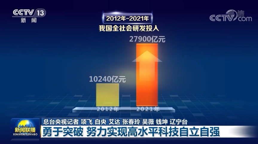 核心技術(shù)自主創(chuàng)新能力的提升也有賴于國家投入的增加。黨的十八大以來,我國全社會研發(fā)投入從2012年10240億元增長到2021年27900億元,其中基礎(chǔ)研究投入從498億元增長到超過1600億元,是十年前的3.4倍。我國投入運(yùn)行和在建的大科學(xué)裝置從屈指可數(shù)增加到50多個,基礎(chǔ)研究和戰(zhàn)略前沿突破能力大幅提升,為偉大變革、筑夢強(qiáng)國奠定新基。
