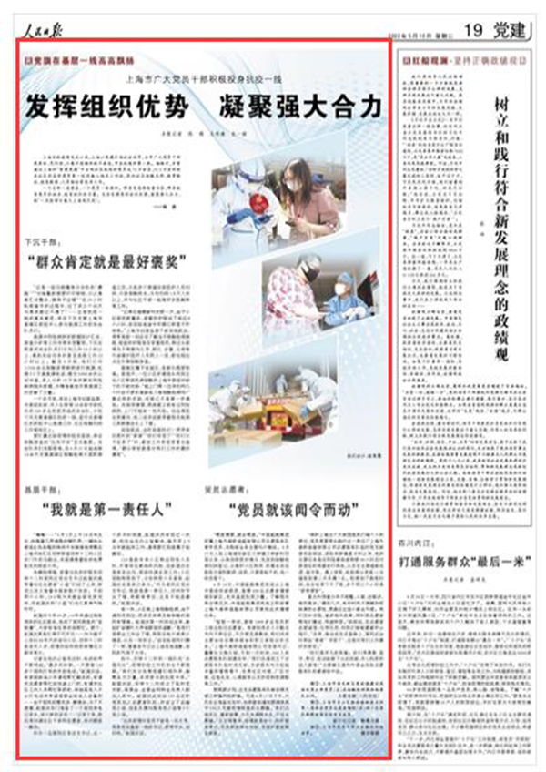 一個支部一座堡壘,一個黨員一面旗幟。哪里有急難險重任務(wù),哪里就有黨員的擔(dān)當(dāng)、就有組織的力量。充分發(fā)揮黨的組織優(yōu)勢,凝聚強大合力,就“一定能夠打贏大上海保衛(wèi)戰(zhàn)”。