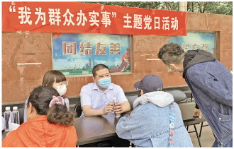 圖為裴昱(中)在“我為群眾辦實(shí)事”主題黨日活動(dòng)上為群眾答疑解惑。 受訪者供圖