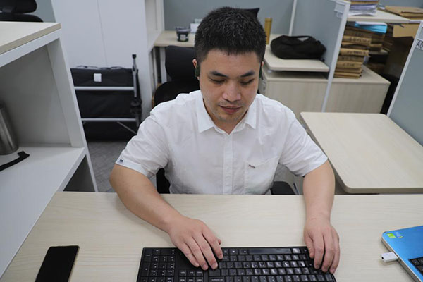 “您好,我是實習律師,請問您申請了勞動仲裁嗎?”在廣州城市中央的寫字樓內(nèi),盤銘徑正協(xié)助參與線上勞動爭議調(diào)解,這是他的工作日常。不久前,盤銘徑領取了法律職業(yè)資格證書,成為廣州首位領證上崗的視障實習律師。