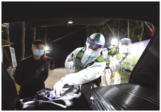 4月9日,執(zhí)勤民警在燈根檢查點檢查過往車輛。