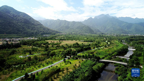 這是陜西省西安市長安區(qū)秦嶺違建別墅“群賢別業(yè)”拆除后建設的秦嶺和諧森林公園(2019年7月26日攝,無人機照片)。新華社記者 劉瀟 攝