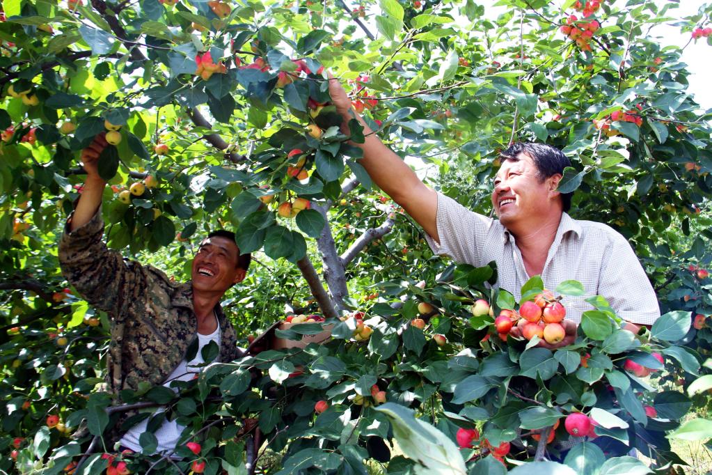 “以前家門口的大山光禿禿的,大風一來吹一臉沙土,可埋汰了;現(xiàn)在漫山遍野的沙果樹綠油油的,不僅沙塵不見了蹤影,而且小沙果成了鄉(xiāng)親們增收的‘金蛋蛋’?!贝笫?zhèn)三星村村民孫顯富說。