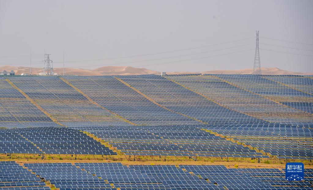 這是位于內(nèi)蒙古庫(kù)布其沙漠中的光伏發(fā)電基地(2020年9月14日攝)。新華社記者 連振 攝