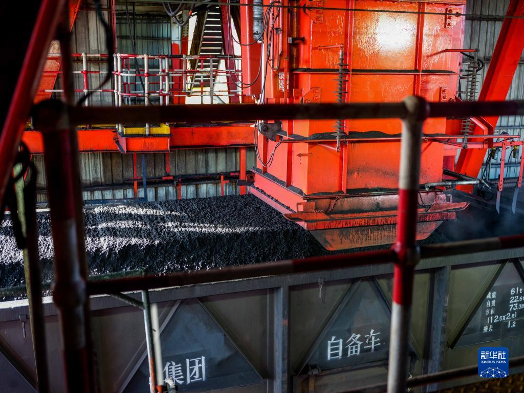 在內(nèi)蒙古鄂爾多斯市國(guó)能神東煤炭洗選中心,煤炭被洗選裝車(2021年12月16日攝)。新華社記者 連振 攝