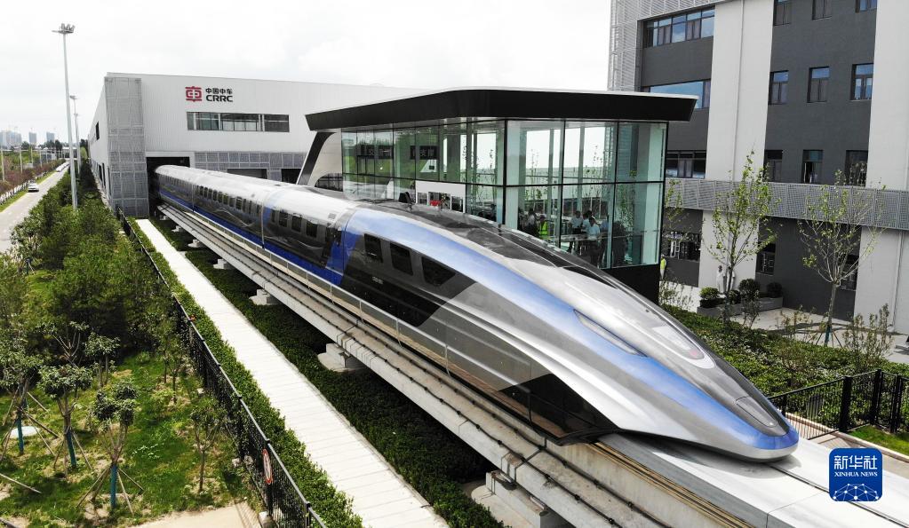 這是在山東青島拍攝的時(shí)速600公里高速磁浮交通系統(tǒng)(2021年7月20日攝,無人機(jī)照片)。新華社記者 李紫恒 攝