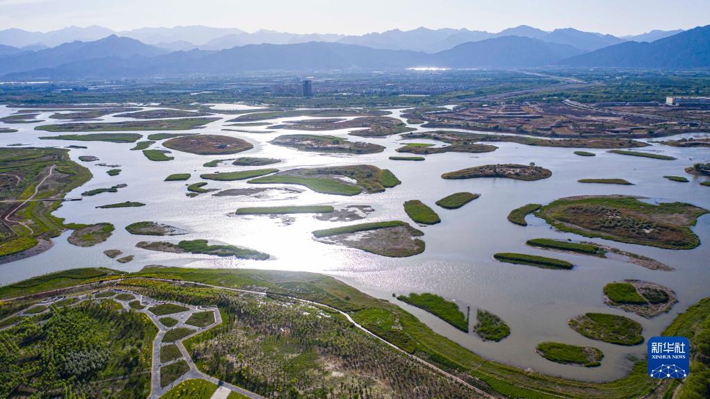 寧夏石嘴山市星海湖(2022年5月30日攝,無人機照片)。新華社記者 楊植森 攝