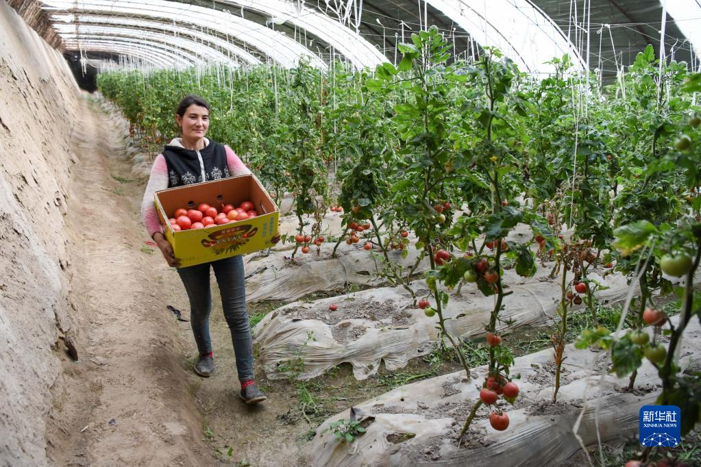 在新疆莎車縣伊什庫力鄉(xiāng)設施農業(yè)基地,種植戶搬運剛采摘的西紅柿(2020年3月18日攝)。該設施農業(yè)基地是在上海援疆莎車分指揮部協(xié)調推動下建立的。新華社記者 丁磊 攝