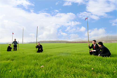徐州市銅山區(qū)法院干警正在現(xiàn)場丈量確定農(nóng)田四至,精準(zhǔn)查清案件事實,妥善、高效化解涉農(nóng)糾紛。