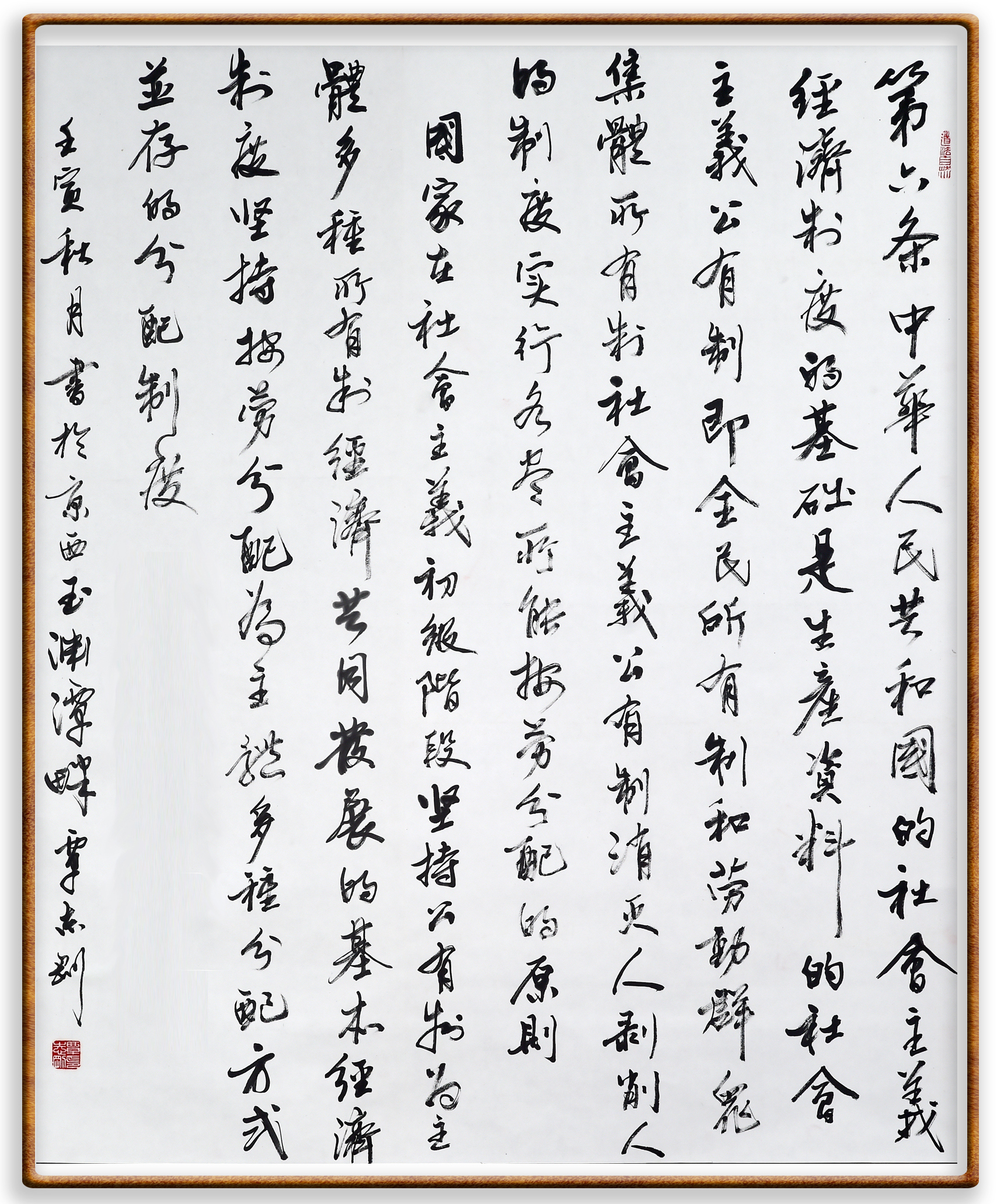 繼《中華人民共和國民法典》《中華人民共和國土地管理法》《中華人民共和國土地管理法實施條例》《中華人民共和國法律援助法》之后,法治日報社聯(lián)合北京市司法局、北京書法家協(xié)會,將筆端對準(zhǔn)《中華人民共和國憲法》和《中華人民共和國行政處罰法》。