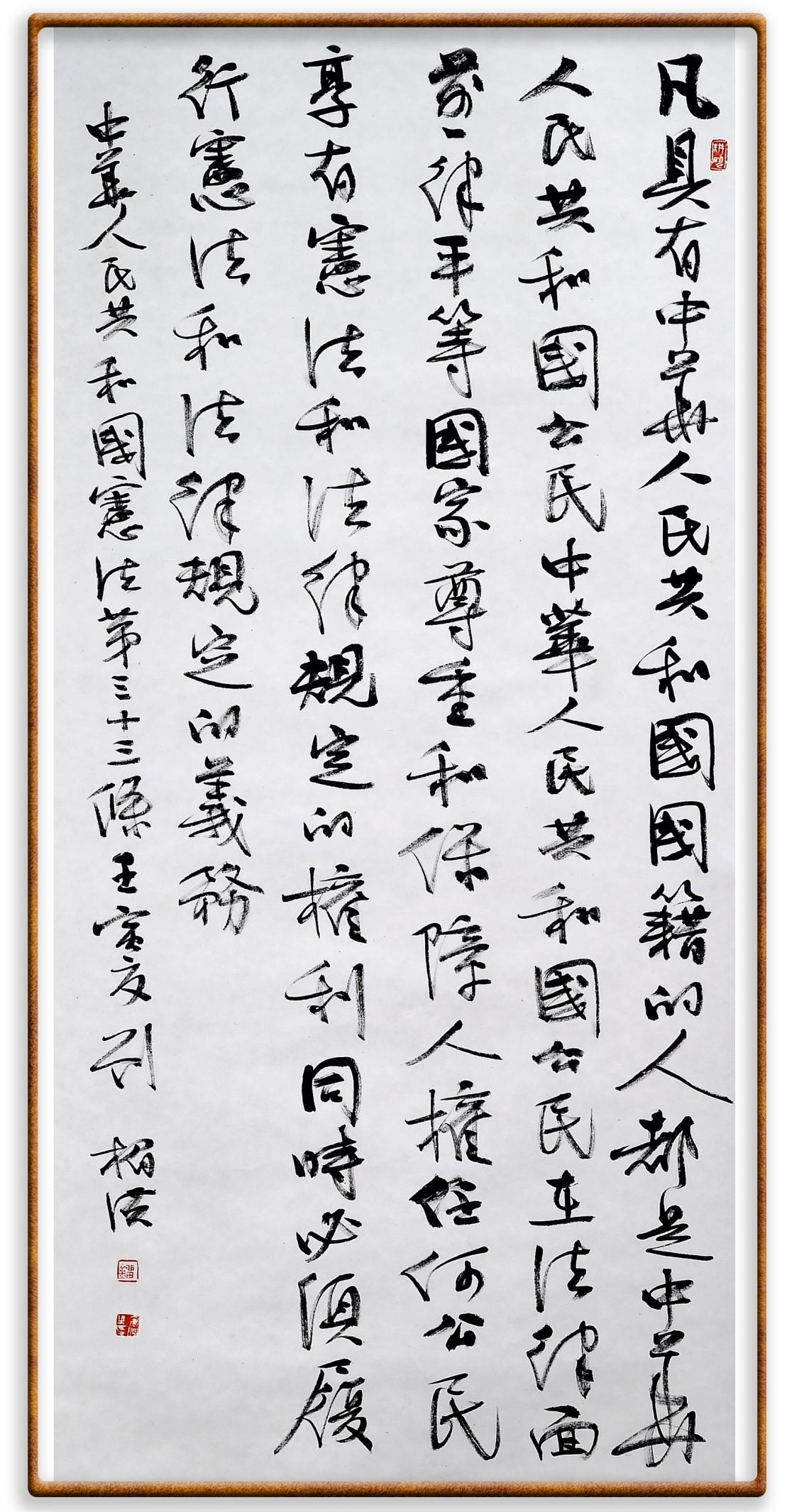 繼《中華人民共和國(guó)民法典》《中華人民共和國(guó)土地管理法》《中華人民共和國(guó)土地管理法實(shí)施條例》《中華人民共和國(guó)法律援助法》之后,法治日?qǐng)?bào)社聯(lián)合北京市司法局、北京書法家協(xié)會(huì),將筆端對(duì)準(zhǔn)《中華人民共和國(guó)憲法》和《中華人民共和國(guó)行政處罰法》。