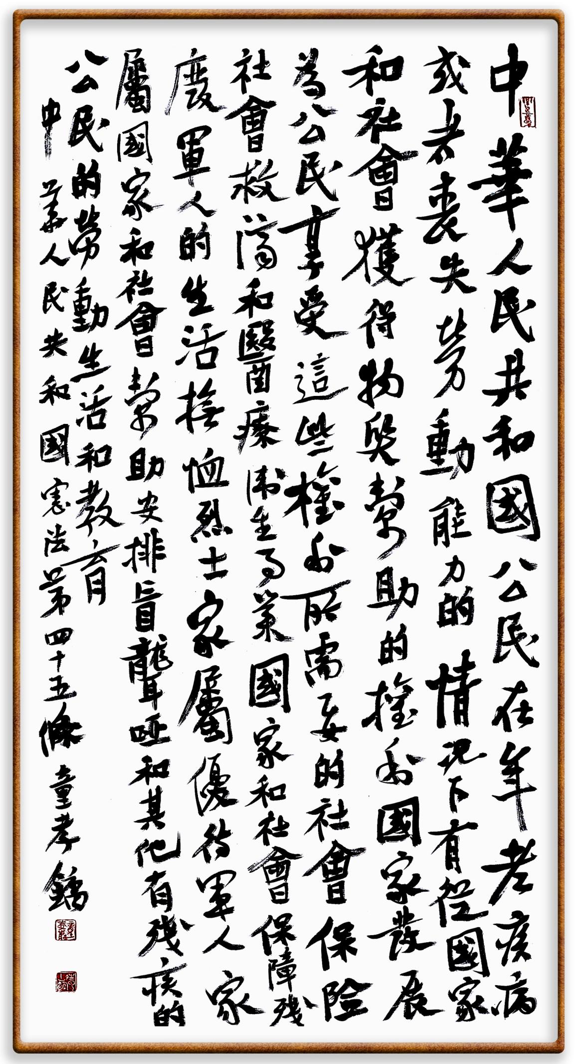 繼《中華人民共和國民法典》《中華人民共和國土地管理法》《中華人民共和國土地管理法實(shí)施條例》《中華人民共和國法律援助法》之后,法治日報(bào)社聯(lián)合北京市司法局、北京書法家協(xié)會(huì),將筆端對(duì)準(zhǔn)《中華人民共和國憲法》和《中華人民共和國行政處罰法》。